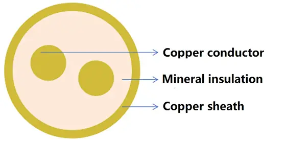 Káble s minerálnou izoláciou sa skladajú z medeného vodiča, práškovej minerálnej izolácie z oxidu horečnatého a medeného plášťa. Keď sa káble používajú v továrňach, kde je meď korozívna, môže sa pridať vonkajšia vrstva polyvinylchloridu (PVC). V budovách alebo podzemných miestach, kde je pre kábel dôležitá estetika alebo ľahká dostupnosť, je možné pridať vonkajší plášť bez obsahu halogénov s nízkou dymivosťou.